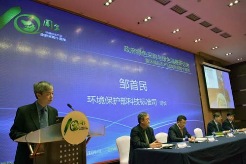 環(huán)保部科技司鄒首民司長(zhǎng)在致辭中指出,環(huán)境標(biāo)志產(chǎn)品政府采購(gòu)制度是實(shí)現(xiàn)經(jīng)濟(jì)發(fā)展與生態(tài)環(huán)境協(xié)調(diào)發(fā)展的典范,財(cái)政部門(mén)采信環(huán)境保護(hù)部門(mén)推動(dòng)的環(huán)境標(biāo)志制度,實(shí)現(xiàn)了部門(mén)職能優(yōu)勢(shì)互補(bǔ),培育了綠色產(chǎn)業(yè)發(fā)展,有效地推動(dòng)了中國(guó)的綠色消費(fèi)和綠色生產(chǎn)的進(jìn)程,產(chǎn)生了良好的經(jīng)濟(jì)和社會(huì)效益,得到了國(guó)際社會(huì)的巨大關(guān)注和好評(píng)。