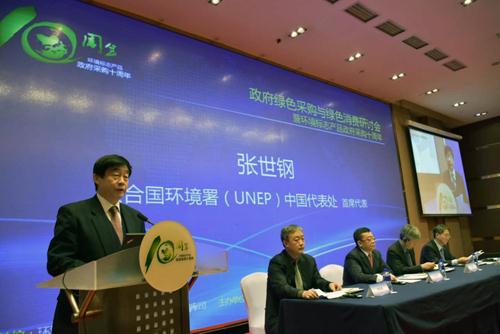 聯(lián)合國(guó)環(huán)境規(guī)劃署中國(guó)代表處首席代表張世鋼先生代表聯(lián)合國(guó)環(huán)境規(guī)劃署對(duì)中國(guó)環(huán)境標(biāo)志產(chǎn)品政府采購(gòu)碩果累累的十年歷程表示了祝賀。希望通過(guò)開(kāi)展深入持續(xù)的國(guó)際合作與交流,與中國(guó)分享可持續(xù)公共采購(gòu)相關(guān)經(jīng)驗(yàn),傳遞中國(guó)環(huán)境標(biāo)志產(chǎn)品政府采購(gòu)“好聲音”,助力中國(guó)環(huán)境標(biāo)志在國(guó)際舞臺(tái)上發(fā)揮越來(lái)越重要的作用。