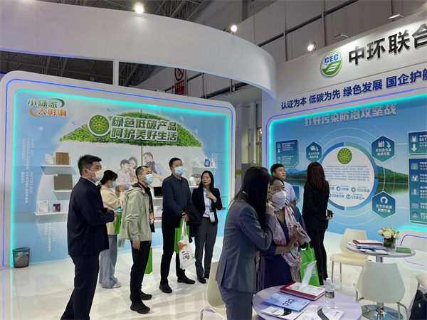 展臺上,中環(huán)聯(lián)合集中展示了中國環(huán)境標(biāo)志產(chǎn)品認(rèn)證以及降碳、減污、擴綠、增長等環(huán)保綠色技術(shù)服務(wù)在助力環(huán)境污染防治、節(jié)能減排、推動綠色生產(chǎn)與消費等方面的成果與典型案例,提供了興業(yè)助企的環(huán)保服務(wù)綠色通道。據(jù)《中國環(huán)境標(biāo)志產(chǎn)品績效評估報告》(2022版)顯示,截至目前,生態(tài)環(huán)境部共頒布了132項環(huán)境標(biāo)志標(biāo)準(zhǔn),現(xiàn)行有效標(biāo)準(zhǔn)109項,累計認(rèn)證企業(yè)7000余家,已有208余萬種規(guī)格型號的產(chǎn)品獲得了中國環(huán)境標(biāo)志認(rèn)證,產(chǎn)品種類涉及印刷、家具、建材、紡織品、電子產(chǎn)品、汽車、日化產(chǎn)品、包裝等行業(yè),形成了每年5萬多億產(chǎn)值的綠色市場。以2021年為例,環(huán)境標(biāo)志產(chǎn)品認(rèn)證有效證書數(shù)超過1.2萬張,有5000余家企業(yè)、208萬種型號通過了環(huán)境標(biāo)志認(rèn)證,為市場提供了大量優(yōu)質(zhì)的綠色環(huán)保產(chǎn)品,優(yōu)化了市場綠色產(chǎn)品的供給能力,支撐了我國綠色消費政策的實施,積極推動了低碳綠色的生產(chǎn)和生活方式的形成。