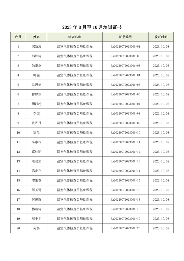 2023年8月至10月培訓證書