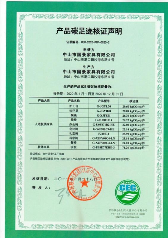 上一篇:中山市國景家具有限公司-CEC-2020-PCF-0025-1-人造板類家具+鋼木家具