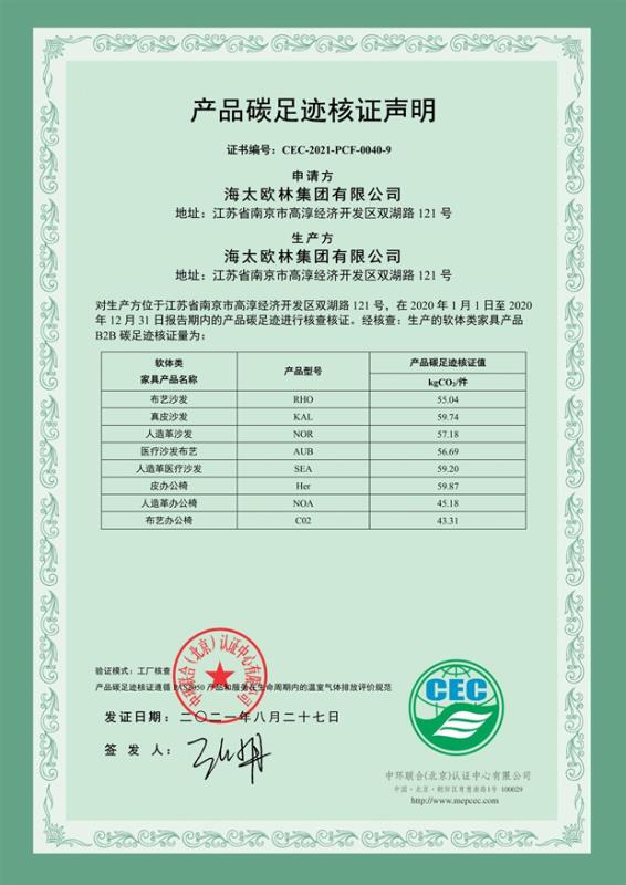 上一篇:海太歐林集團(tuán)有限公司-產(chǎn)品碳足跡證書(shū)-CEC-2021-PCF-0040-10-軟體類(lèi)家具