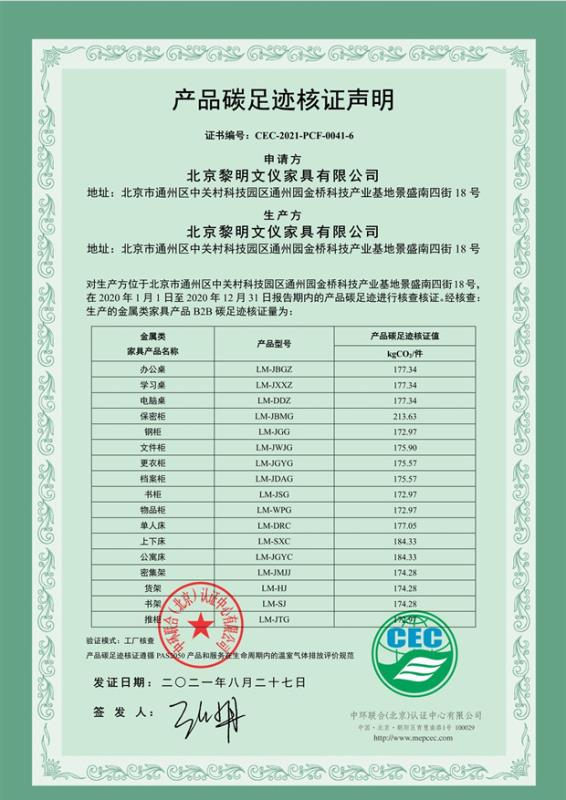 下一篇:北京黎明文儀家具有限公司-產品碳足跡證書-CEC-2021-PCF-0041-5-軟體類家具