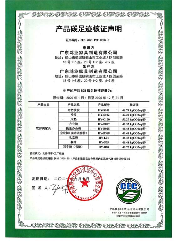下一篇:廣東省鴻業家具制造有限公司碳足跡核證聲明-CEC-2021-PCF-0037-2-金屬類鋼木類綜 合類木家具