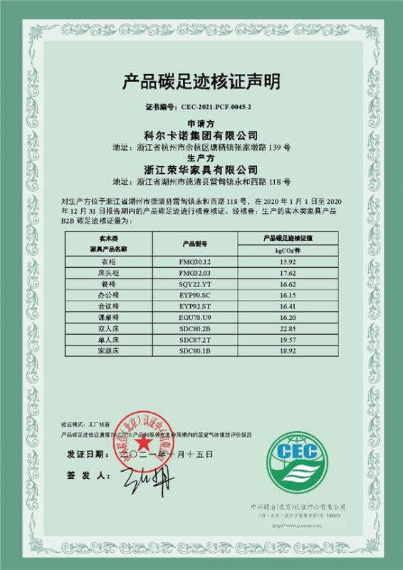 下一篇:浙江榮華家具有限公司碳足跡核證聲明-CEC-2021-PCF-0045-1-實(shí)木類(lèi)家具