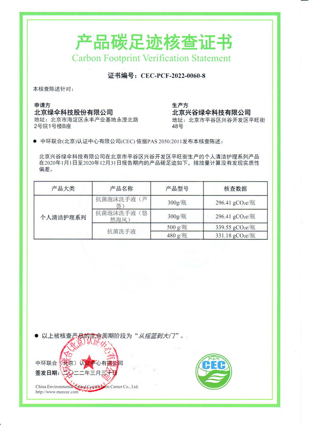 下一篇:北京興谷綠傘科技有限公司-CEC-PCF-2022-0060-7-家具清洗護理系列