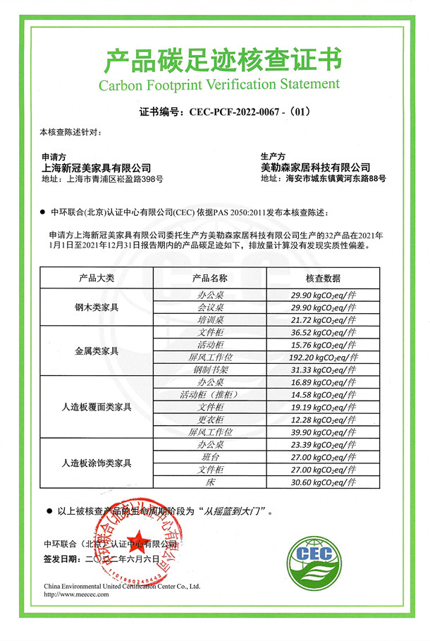 上一篇:美勒森家居科技有限公司-CEC-PCF-2022-0067-(02)-軟體類家具+實(shí)木類家具