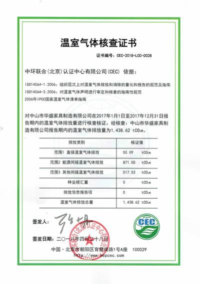 中山市華盛家具制造有限公司 CEC-2018-LCC-0028