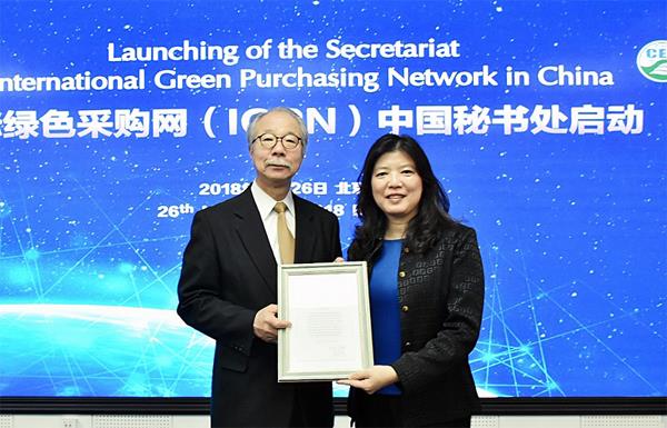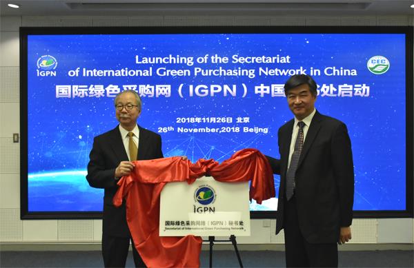 2018年11月26日,藉APEC典型綠色產(chǎn)品能力建設(shè)項(xiàng)目研討會(huì)——環(huán)境標(biāo)志與綠色消費(fèi)在京召開之際,國(guó)際綠色采購網(wǎng)絡(luò)(IGPN)中國(guó)秘書處啟動(dòng)活動(dòng)在京舉行。在與會(huì)領(lǐng)導(dǎo)和專家的見證下,IGPN主席中原秀樹先生將秘書處授權(quán)證書正式交給中環(huán)聯(lián)合認(rèn)證中心(CEC)。
