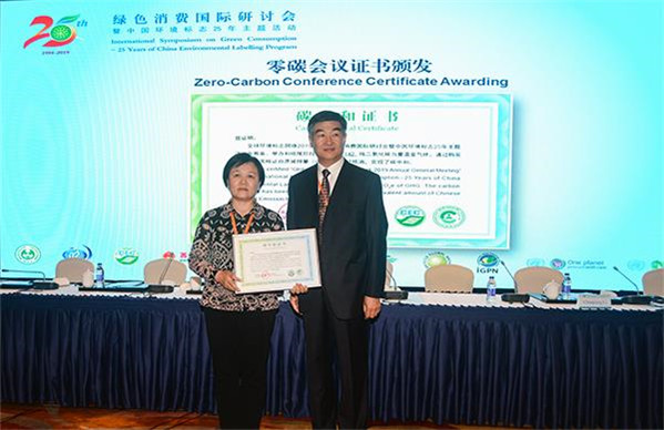環境標志認證工作的開展對中國的生態環境改善產生了積極影響。會議對建立和推動中國環境標志制度的老領導以及支持環境標志工作的企業和機構授予了相關榮譽。同時,為倡導綠色低碳理念,會議承辦單位中環聯合認證中心核算了本次會議排放的二氧化碳,并購買了等量的碳減排信用,以中和會議的全部碳排放。因此,本次會議實現了“零碳會議”。