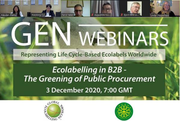 受新冠疫情影響,GEN2020年會以網絡會議形式召開,會期自10月22日至12月3日,,包括理事會議、成員年度會議、成員間研討會及公開研討會等。中環聯合作為GEN成員和理事,全程參與本屆年會及系列研討會,在會上分享了中國環境標志在疫情期間的最新發展,并主持了環境標志與綠色采購主題研討會。
