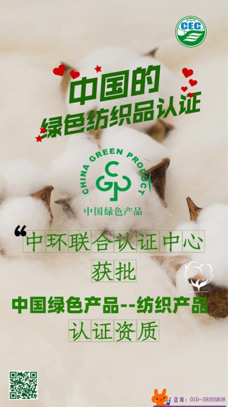2021年4月1日,中環聯合認證中心(以下簡稱CEC)獲批中國綠色產品-紡織產品認證資質。