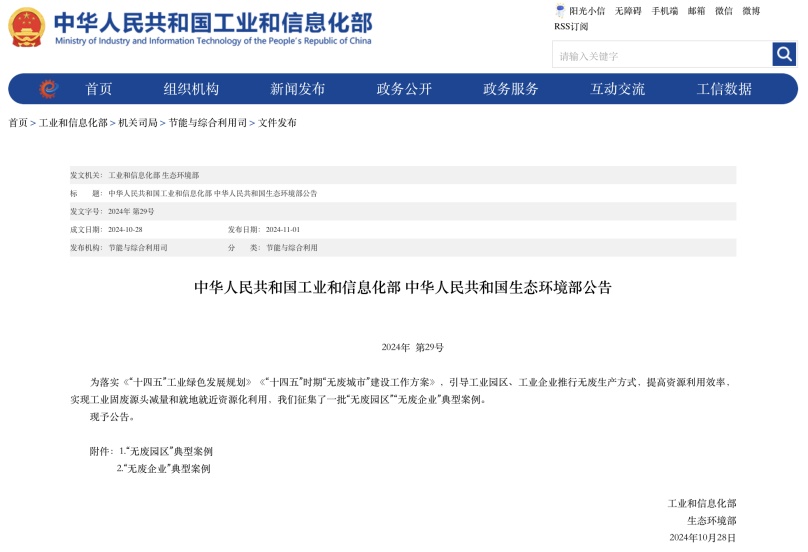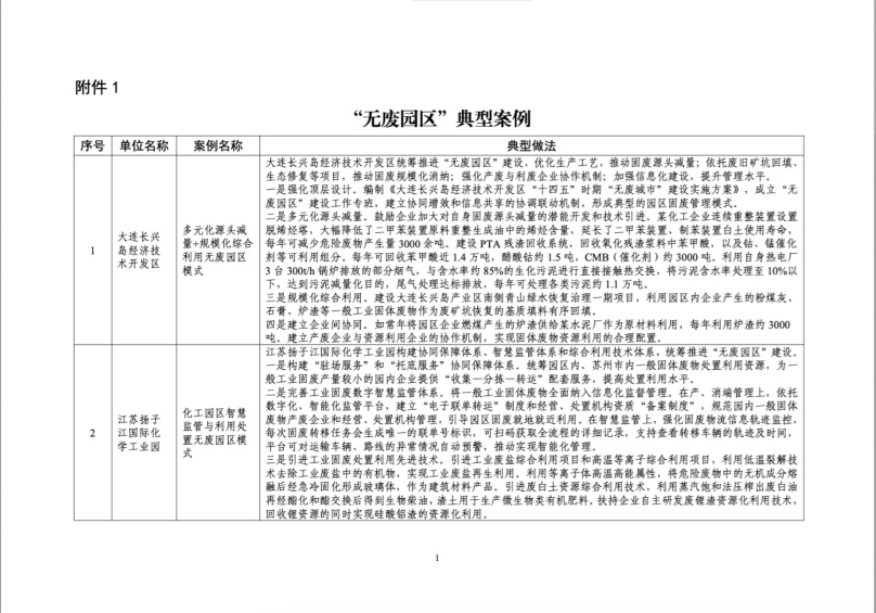 中環(huán)聯(lián)合助力2家園區(qū)入選國家級“無廢園區(qū)”典型案例