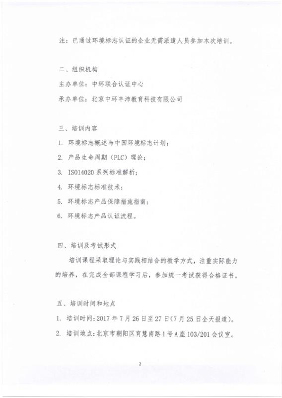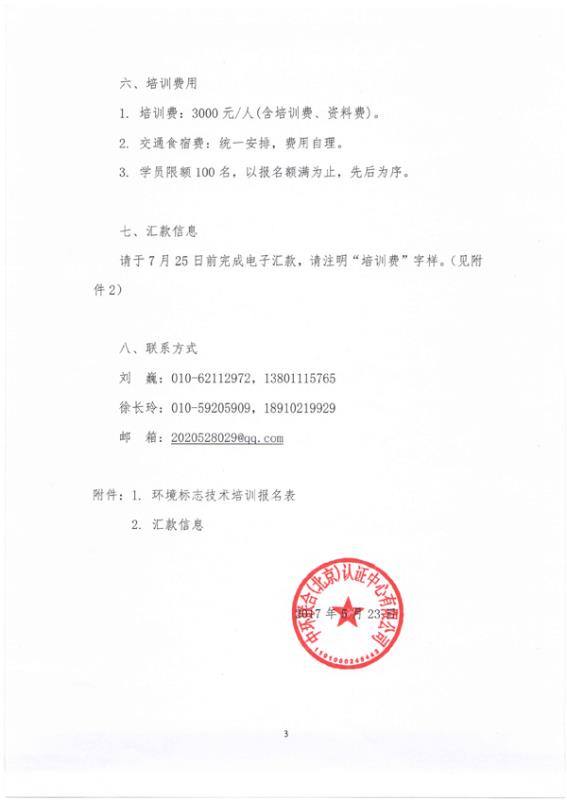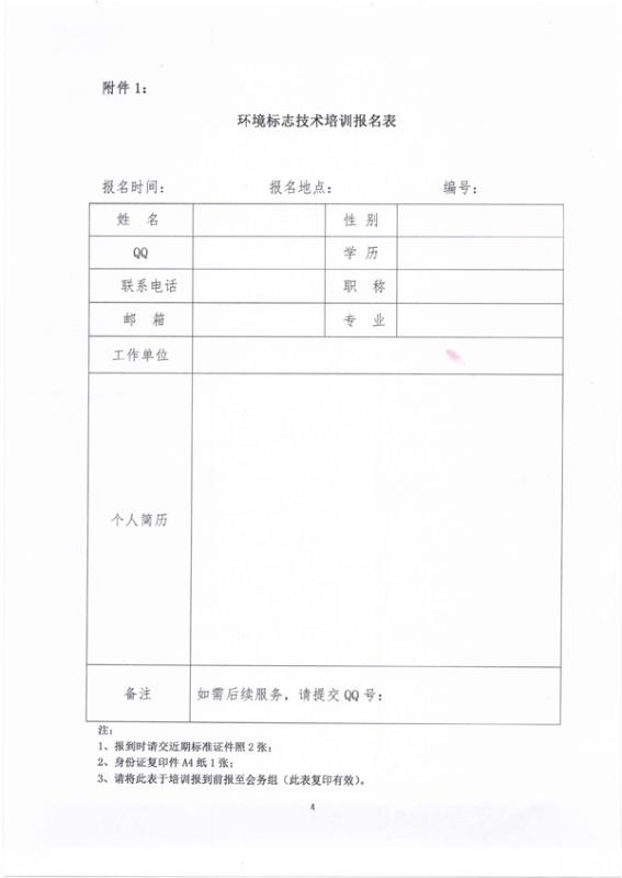 環(huán)境標(biāo)志技術(shù)培訓(xùn)報名表及匯款信息
