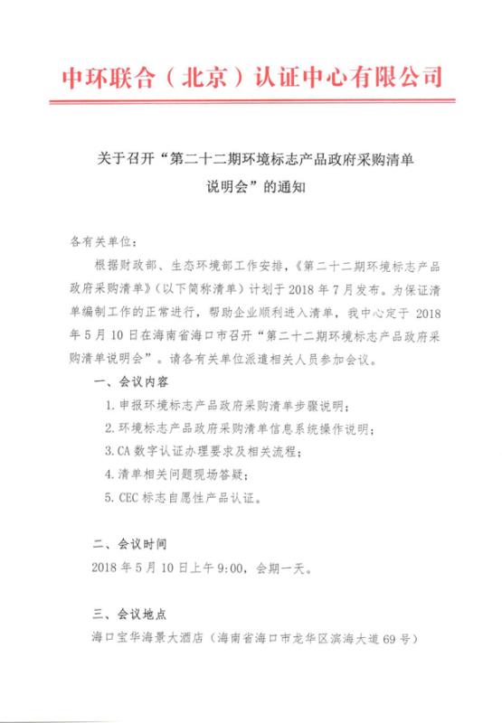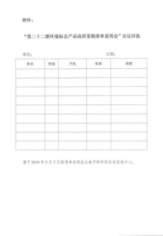 “第二十二期環(huán)境標(biāo)志產(chǎn)品政府采購清單說明會”會議回執(zhí)