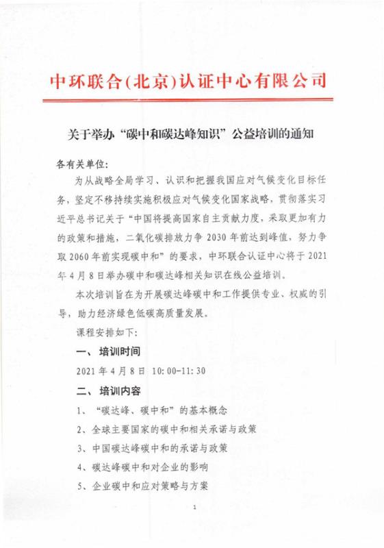 關(guān)于舉辦“碳中和碳達(dá)峰知識”公益培訓(xùn)的通知