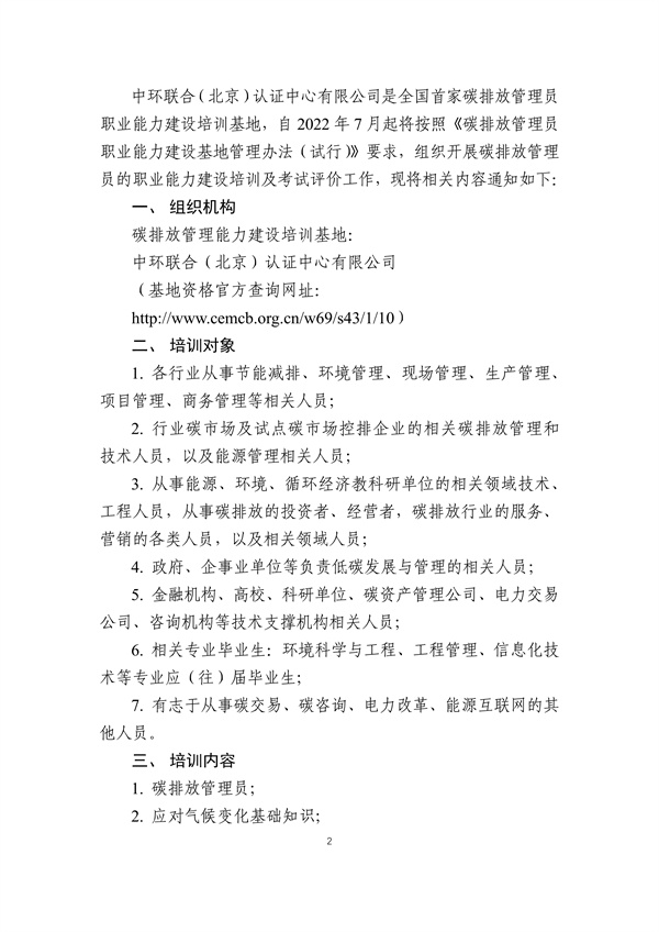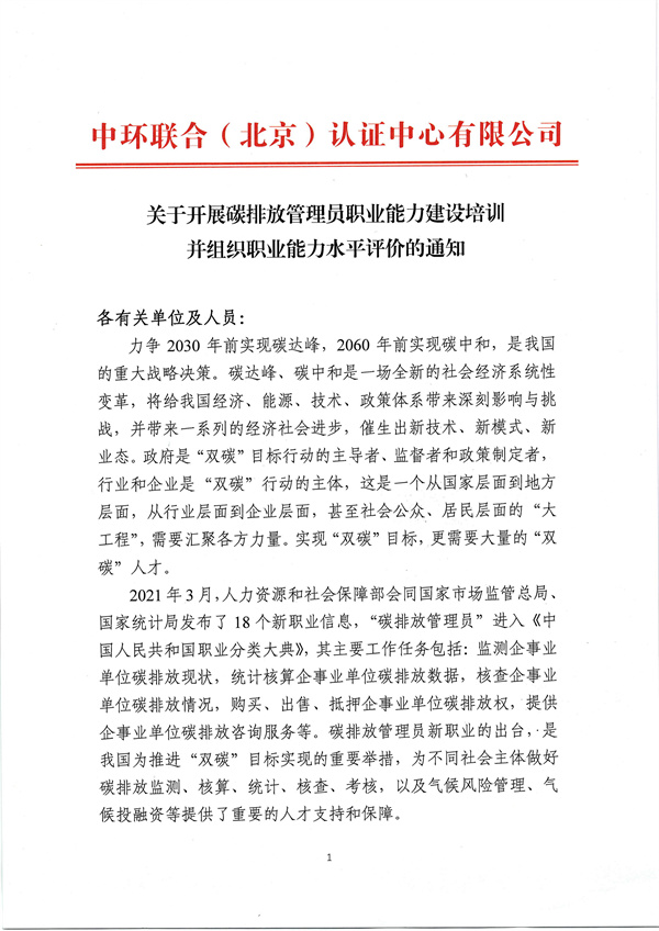 關于碳排放管理員職業能力建設培訓及能力水平評價通知