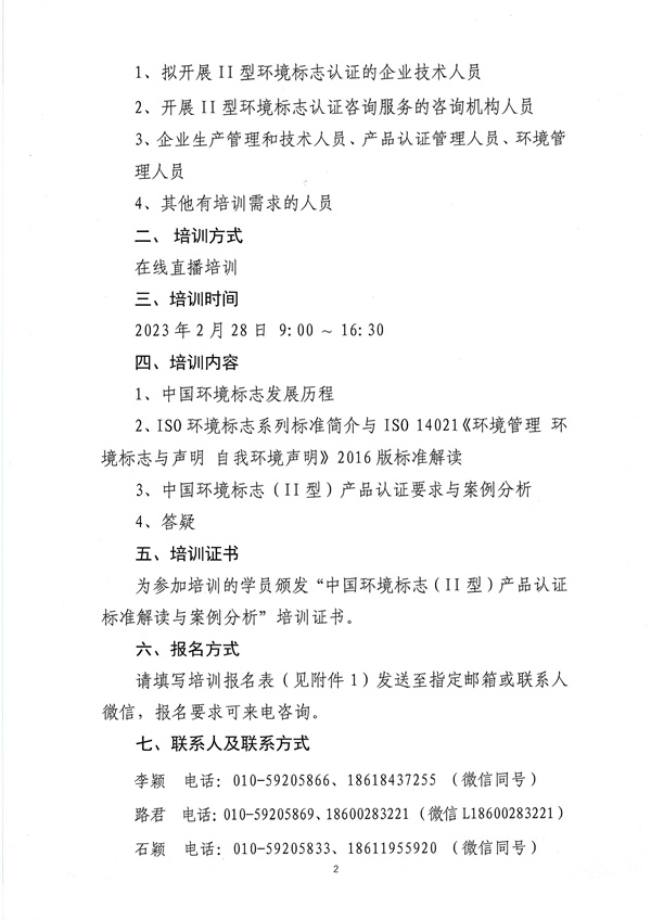 關(guān)于舉辦環(huán)境標(biāo)志(II型)產(chǎn)品認(rèn)證標(biāo)準(zhǔn)解讀與案例分析培訓(xùn)的通知