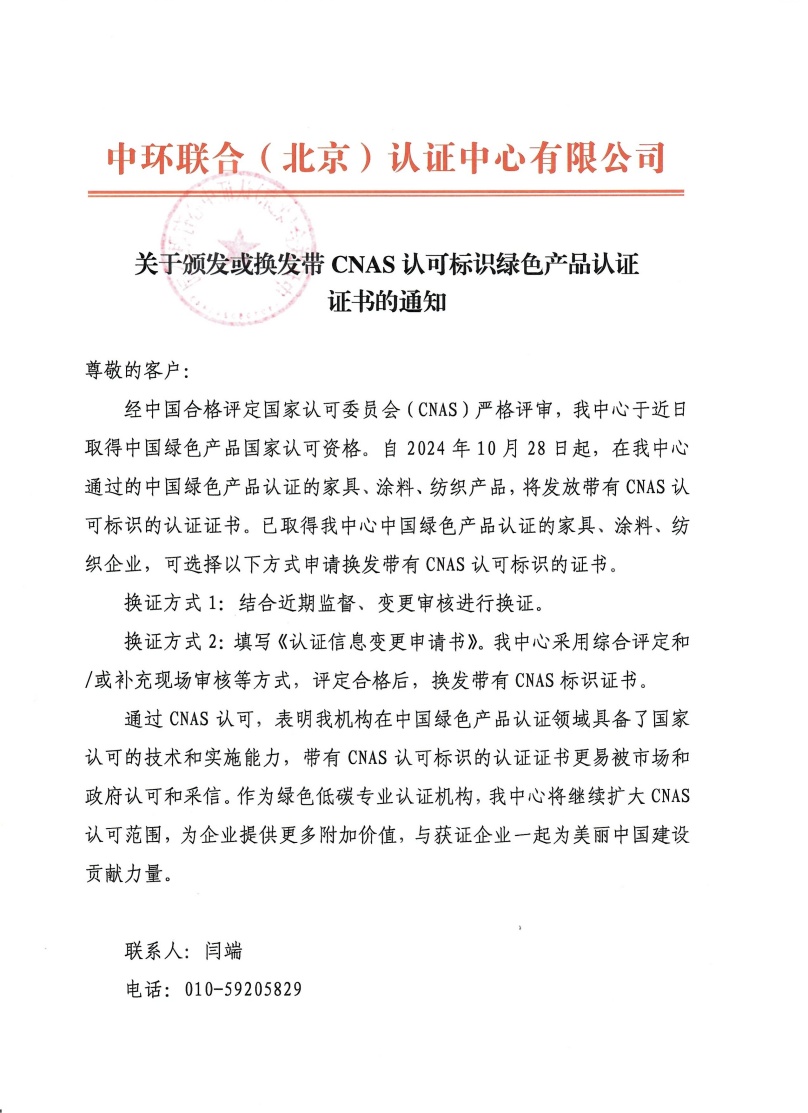 關(guān)于頒發(fā)或換發(fā)帶CNAS認(rèn)可標(biāo)識(shí)綠色產(chǎn)品認(rèn)證證書(shū)的通知