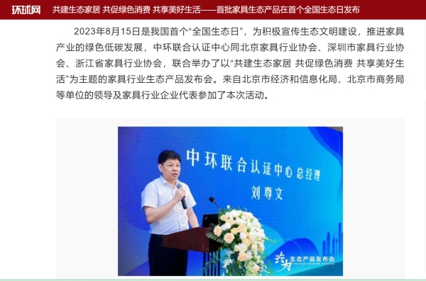 中國(guó)政府采購(gòu)信息網(wǎng)以《探索綠色低碳家具發(fā)展模式 首批家具生態(tài)產(chǎn)品發(fā)布》為題,通過(guò)重點(diǎn)解析幾位領(lǐng)導(dǎo)的精彩致辭,以媒體視角將生態(tài)產(chǎn)品認(rèn)證定位為“綠色低碳家具發(fā)展新模式下的一種探索”。