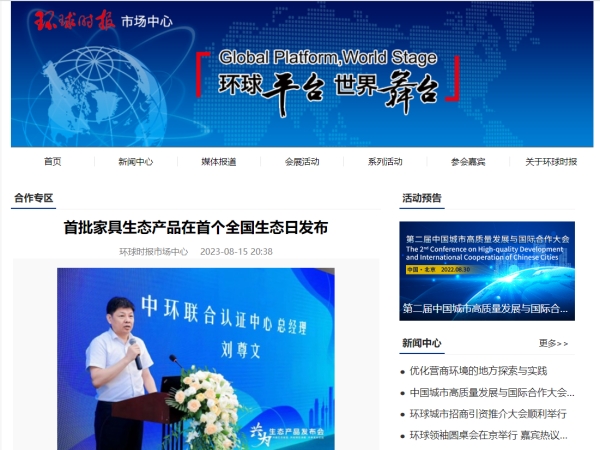 《中國(guó)環(huán)境報(bào)》作為國(guó)家生態(tài)環(huán)境部主管的行業(yè)權(quán)威紙媒,以及全球唯一一家國(guó)家級(jí)環(huán)境紙媒,也關(guān)注并支持著本次活動(dòng),重點(diǎn)報(bào)道了活動(dòng)中“發(fā)布共建生態(tài)家居戰(zhàn)略倡議書(shū)”及“頒發(fā)首批認(rèn)證企業(yè)獲證證書(shū)”等亮點(diǎn)環(huán)節(jié)。