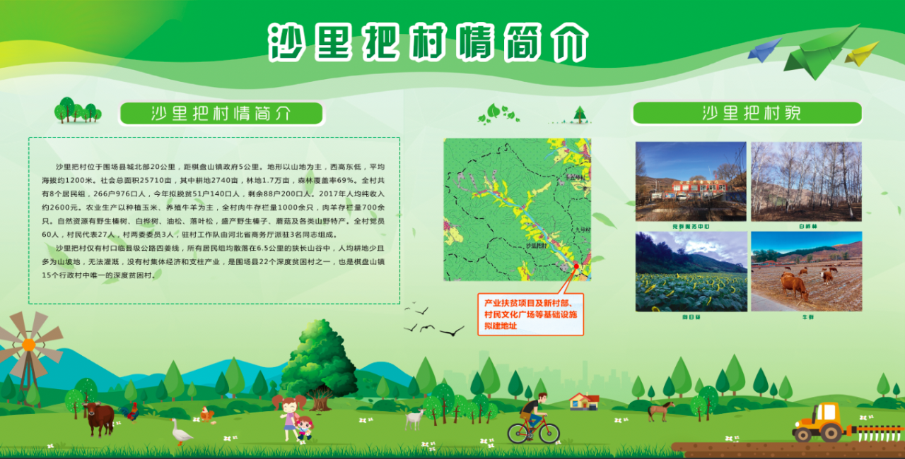 沙里把村是圍場縣棋盤山鎮5個貧困村中唯一的深度貧困村,總面積25710畝,其中耕地2767畝,林地1.7萬畝,森林覆蓋率69%。全村共有266戶964口人,主要...